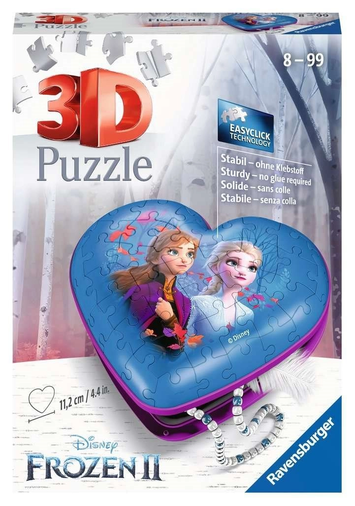 Assemblez un cœur 3D à l’effigie de Disney La Reine des Neiges 2 à partir de pièces en plastique avec la technologie EasyClick. Le cœur peut servir de boîte à bijoux et à divers petits objets.