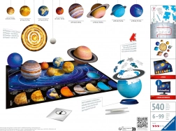 Découvrez la beauté de notre système solaire sous une forme interactive. Le set comprend 8 puzzleballs 3D de planètes de différents diamètres, deux anneaux planétaires, un Soleil en carton rigide et une Lune en polystyrène expansé. Chaque pièce est précisément façonnée et, une fois assemblée, forme des sphères stables et lisses sans colle.