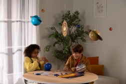 Assemblez 8 planètes de tailles et de couleurs différentes, complétez-les avec des anneaux, la Lune, puis exposez-les sur des supports ou suspendez-les.