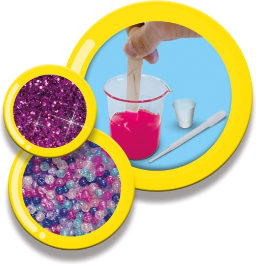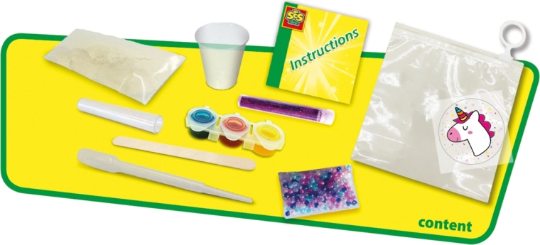 Dans l’emballage, vous trouverez des ingrédients pour fabriquer du slime à la maison et bien plus encore. Les slimes sont sans danger, faciles à rincer et lavables, sans gluten, et offrent vraiment beaucoup de plaisir. Fabriquer du slime, c’est génial ! Mélangez le slime, choisissez une couleur et ajoutez des ingrédients spéciaux. Vous pouvez emporter le slime avec vous dans une pochette zippée.