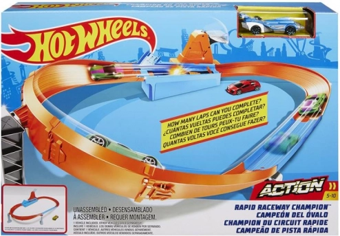 Avec le coffret Rivalité des champions de HOT WHEELS, les enfants profitent de courses, drifts et cascades sur des pistes orange avec lanceurs et virages. Inclus : portique de départ, lanceur puissant, drapeaux à renverser pour marquer des points et 1 voiture métal pour commencer tout de suite.