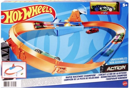 Découvrez un set de course riche en adrénaline où les jeunes pilotes s’affrontent dans 3 disciplines : circuit de drift avec départ latéral, courses parallèles avec compte à rebours et montée avec lancement fulgurant. Grâce au système modulaire, le set peut se combiner avec d’autres pistes HOT WHEELS pour créer un univers de vitesse spectaculaire.