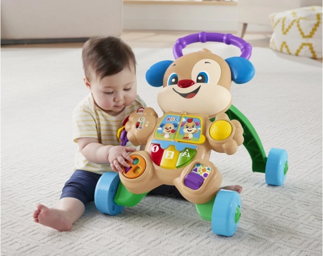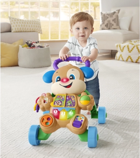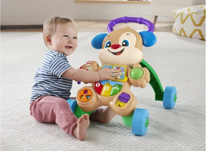 Mettez en mouvement les premiers pas avec le trotteur Fisher-Price en forme de chiot joueur. Le panneau interactif avec boutons, lumières et petit livre apprend l’alphabet, les chiffres, les couleurs et les formes, tandis que la structure stable favorise la motricité globale et la confiance à la marche. Grâce à la technologie Smart Stages, le contenu s’adapte à l’âge de l’enfant pour un apprentissage ludique pas à pas.