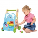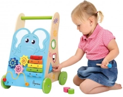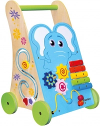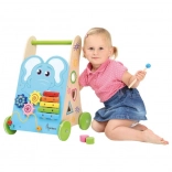 Soutenez les premiers pas et l’esprit curieux de votre enfant avec ce chariot de marche en bois de qualité, décoré d’un éléphant. Il offre un xylophone au son doux, un labyrinthe de perles, un jeu d’encastrement et des roues dentées pour s’amuser tout en développant la motricité. Des roues en caoutchouc silencieuses protègent le sol et la structure stable en bois FSC garantit un jeu sécurisé à partir de 18 mois.