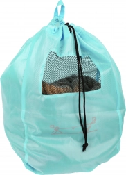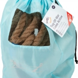 Le sac turquoise avec une fenêtre en maille permet un transport et un stockage faciles de la corde après le jeu.