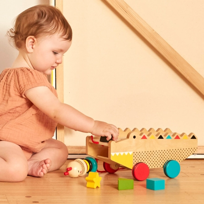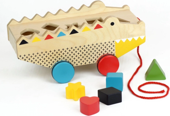 Cet alligator en bois à tirer avec boîte à formes est un jouet idéal pour les petits explorateurs dès 18 mois. Les cinq formes robustes s’insèrent facilement dans les ouvertures correspondantes, développant la coordination œil-main et la pensée logique. Grâce à la corde pratique pour le tirer et aux roues caoutchoutées, les enfants profitent d’un jeu actif à la maison comme en déplacement.