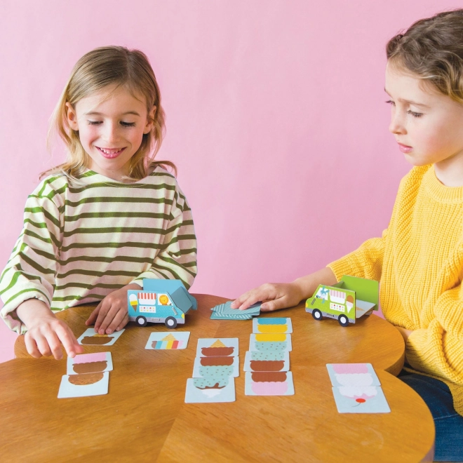 Gourmands, à vous de jouer ! Un jeu de cartes malin et amusant où vous assemblez des cornets de glace, collectionnez des boules et ajoutez des vermicelles. Contient 52 cartes illustrées et 4 camions de glace, idéal pour 2 à 4 joueurs, dure environ 10 minutes et est fabriqué à partir de matériaux recyclés avec des encres végétales. Un excellent choix pour les enfants de 4 à 8 ans et conforme à toutes les normes de sécurité.