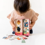 Habillage Magnétique - Atelier est un jouet créatif qui encourage les filles à rêver et à être créatives. Cet ensemble ludique contient plus de 25 pièces magnétiques, permettant de créer différentes scènes.