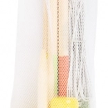 Le set est fabriqué en bois certifié FSC 100 %, issu de forêts gérées de manière responsable. Le jeu stimule la motricité fine et globale, la coordination œil–main et la coopération en équipe. Les boules en bois doivent passer tous les arceaux dans l’ordre indiqué – celui qui y parvient le plus rapidement avec le moins de coups l’emporte.