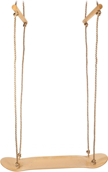 Les poignées en bois robustes sur les cordes se règlent facilement à la hauteur idéale. Elles offrent un appui lors de la prise d’élan et du balancement debout.