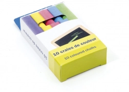 Un ensemble pratique de craies scolaires dans un emballage en carton, idéal comme accessoire pour les tableaux d’enfants et de bureau. Contient 10 craies de couleur pour écrire et dessiner confortablement sur tableau.