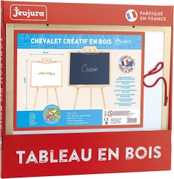 Tableau magnétique double face sur chevalet en bois offrant un divertissement créatif aux enfants dès 3 ans. Fabriqué en hêtre et pin de haute qualité en France.