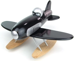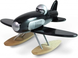 Ce superbe hydravion de la marque Vilac est fabriqué en bois noir laqué de qualité avec un grand souci du détail. Il se distingue par son design rétro stylé, ses accents métalliques et ses flotteurs en bois, en faisant non seulement un jouet, mais aussi un élément décoratif pour la chambre d’enfant.