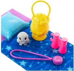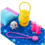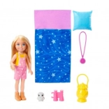 Découvrez la nature avec la poupée Barbie Chelsea inspirée de la série BARBIE It Takes Two. Chelsea est prête pour s’amuser toute la journée avec sa salopette rose et ses chaussures de randonnée, tandis que des accessoires comme les jumelles, la boussole et la lampe éveillent la curiosité et l’esprit d’aventure. Après une journée bien remplie, installez-la dans son sac de couchage tout doux à petites étoiles et, avec le coussin, elle s’endort confortablement.