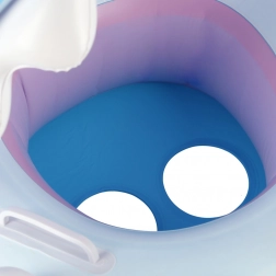 La capote intégrée réduit l’exposition au soleil et augmente le confort de l’enfant même lors de séjours prolongés dans l’eau.