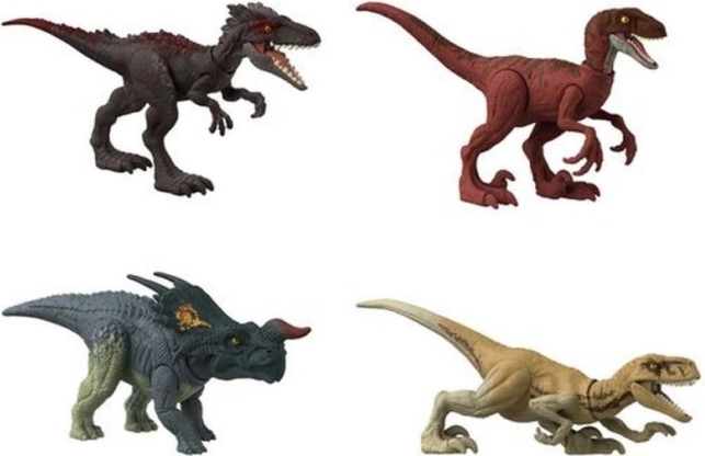 Préparez-vous pour de nouvelles aventures palpitantes avec Jurassic World Fuite des dinosaures ! Ces dinosaures de la collection Meute sauvage sont connus pour paître, chasser et attaquer en meute. Choisissez parmi des carnivores et des herbivores. Chaque dinosaure possède des articulations mobiles et une finition réaliste. Téléchargez l’application Jurassic World Facts (application disponible en anglais sur Google Play et l’App Store) et profitez encore plus des dinosaures ! L’application permet de scanner le dinosaure et de le voir prendre vie, de le rapprocher, d’entendre ses rugissements, d’apprendre des faits amusants sur les dinosaures et bien plus encore. Pour les enfants à partir de 3 ans. Les couleurs et les finitions peuvent varier.