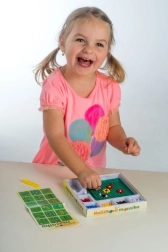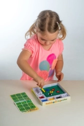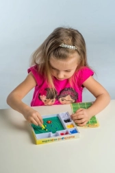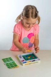 Cette mosaïque est un excellent choix pour les premières activités créatives. Les enfants utilisent la pince pour placer les billes colorées sur la plaque et créer des motifs simples ou originaux. L’activité favorise la patience, la coordination œil-main et le développement de la motricité fine.