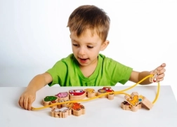 Ce jeu d’enfilage offre aux enfants la possibilité d’apprendre et de développer leur motricité en s’amusant.