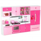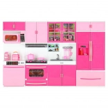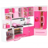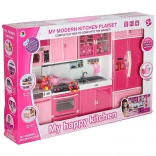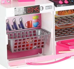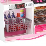 Le set comprend un micro-ondes et un lave‑vaisselle, une cuisinière avec four, une vitrine avec évier et un réfrigérateur avec tiroir. Les enfants profiteront d’un scénario complet de cuisson, de pâtisserie et de rangement.