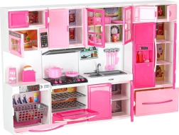 Cette cuisine moderne pour poupées ouvre aux enfants un univers de fantaisie en imitant les activités quotidiennes. Les quatre segments connectés permettent de composer une cuisine complète avec tous les éléments essentiels – de la cuisinière avec four au réfrigérateur et à l’évier. Les brûleurs éclairés par LED et les sons confèrent au jeu de cuisine une touche de réalisme.