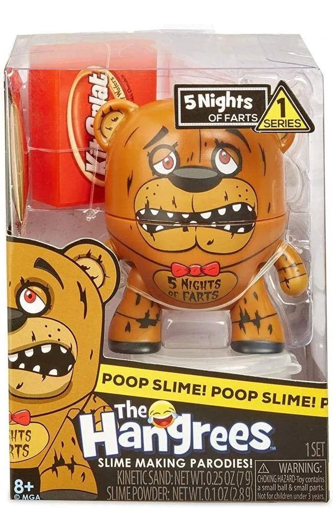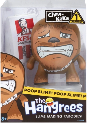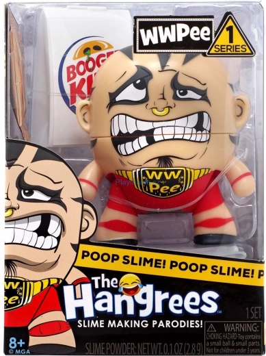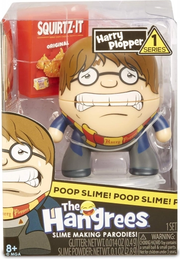 Hangrees Glouton de la série 1 apporte un humour original et un jeu créatif. L’enfant nourrit la figurine, la secoue et en un rien de temps se crée un slime, qui peut être rangé en toute sécurité dans la mini toilette fournie. Des accessoires amusants et des clins d’œil à des marques connues donnent au jeu un style unique.