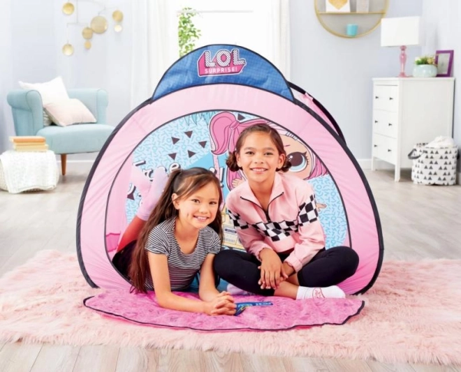 La tente est décorée d’images de personnages stylisés de LOL Surprise, offrant une expérience de jeu interactive et magique.
