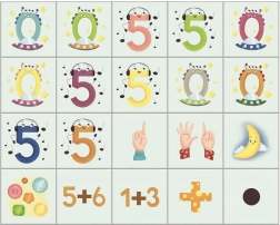 - chiffres, signes mathématiques, symboles par points, illustrations de doigts qui comptent