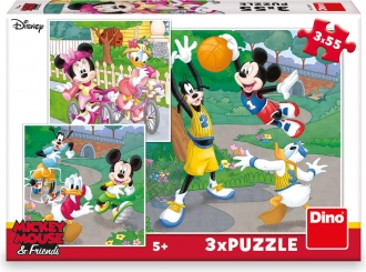 Puzzle MICKEY ET MINNIE font du sport 3×55 pièces