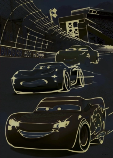 • Effet néon dans l’obscurité – met en valeur les contours de Flash McQueen, Jackson Storm et Cruz Ramirez