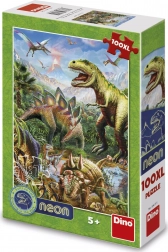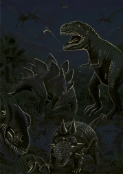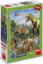 Découvrez le monde des dinosaures grâce à ce puzzle néon incroyable ! Votre enfant s'amusera à assembler les pièces avec des éléments néon qui s'illuminent dans le sombre et révélant les contours des dinosaures avec une chaîne de montagnes dramatique en arrière-plan.