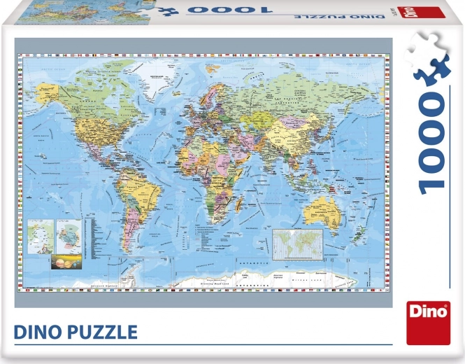 Puzzle Dino – carte politique du monde, 1000 pièces. Dimensions 66×47 cm, carton de qualité, fabriqué en République tchèque. Amusement et apprentissage pour 15+.