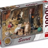 Découvrez la magie de l’assemblage avec le puzzle « Chats mystérieux » de 1000 pièces de la série Secret Collection. L’illustration renferme une myriade de chats et de chatons qui mettront à l’épreuve votre attention, votre patience et votre raisonnement logique. Fabriqué en République tchèque avec un contrôle de complétude par technologie laser.