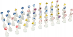 50 pcs de panneaux de signalisation (carton, hauteur env. 5 cm), 50 pcs de socles en plastique, description en tchèque et en slovaque de la signification des panneaux