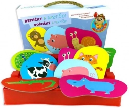 Grandes plaquettes colorées avec images, notice en tchèque et slovaque, boîte avec poignée
