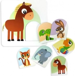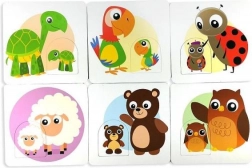 Les enfants cherchent les bonnes paires – un petit et un grand animal – et entraînent leur sens logique ainsi que la reconnaissance des formes et des couleurs.