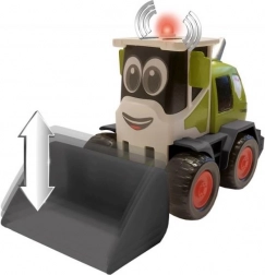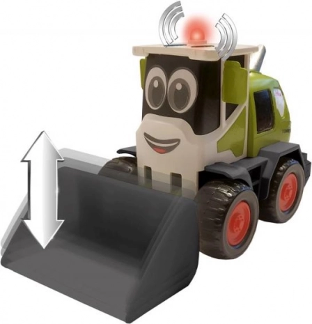 Cette adorable chargeuse CLAAS Mini de couleur verte avec roues noires et détails rouges ravira les plus petits grâce à ses fonctions réalistes. En appuyant sur un bouton, vous entendrez le bruit du moteur et les feux d’avertissement s’allumeront. Le godet à commande manuelle permet une levée et une descente faciles, favorisant la motricité fine.