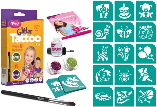 Le kit de tatouages pailletés TyToo Happy Birthday est idéal pour les fêtes d’enfants comme pour les anniversaires d’adultes. Grâce à une application simple et à une colle sûre, vous créez en un rien de temps des motifs éclatants et durables qui illumineront toute fête d’anniversaire.
