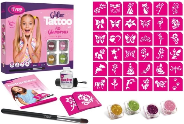 Découvrez une activité créative avec le grand coffret de tatouages pailletés TyToo Glamorous. Il propose 36 motifs féminins populaires et 4 couleurs de paillettes pour des combinaisons infinies. Les tatouages sont résistants à l’eau, tiennent sur la peau en moyenne 8 à 18 jours et peuvent être facilement retirés avec de l’alcool ou de l’huile pour bébé. Le kit comprend également des strass autocollants et des yeux mobiles pour une décoration originale.