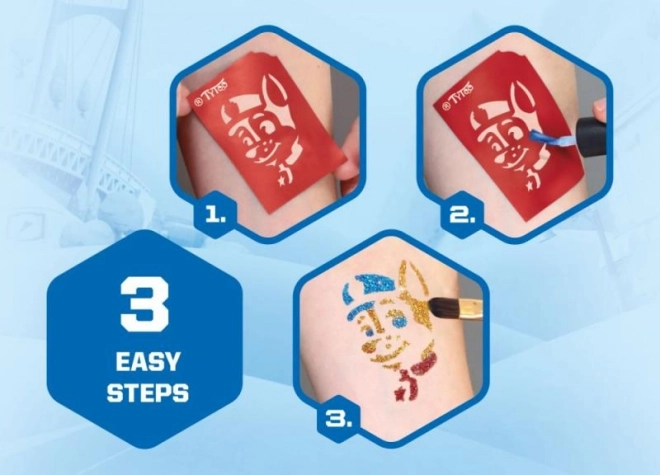 Créez des moments magiques avec le set de tatouage Pat' Patrouille, qui séduira tous les jeunes fans. Motifs de la série préférée, qui durent jusqu'à 18 jours et s'enlèvent facilement avec de l'alcool ou de l'huile pour enfants.