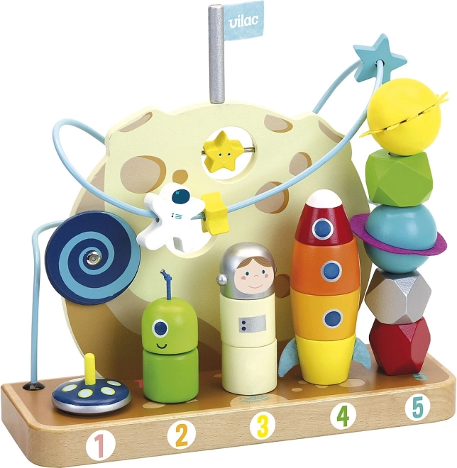 Découvrez un jouet en bois ludique au thème spatial qui apprend aux enfants à compter tout en développant leur motricité fine. Étoiles coulissantes sur fil, planètes empilables, martien, astronaute et fusée stimulent l’imagination et l’apprentissage. Idéal pour une première initiation aux compétences mathématiques et à la coordination œil-main.