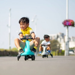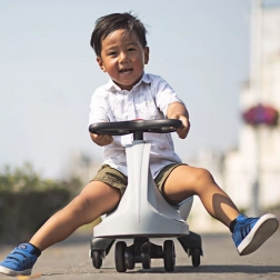 Le Didicar gris est une draisienne ingénieuse qui se déplace sans chaîne, moteur ni batterie – il suffit de tourner le volant de gauche à droite. Grâce à un centre de gravité bas, une selle confortable et une base stable, la conduite est fluide et sûre, aussi bien en intérieur qu’à l’extérieur sur asphalte ou béton. Les certifications pour les marchés européen et américain soulignent l’accent mis sur la sécurité et la qualité.