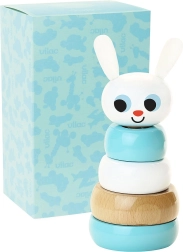 La tour à empiler pour enfants Vilac Lapin est un jouet élégant qui ravira petits et grands. Grâce aux solides anneaux en bois, les enfants exercent leur motricité fine, leur patience et leur raisonnement logique. Son look minimaliste au charme rétro, signé par l’illustratrice suédoise Ingela P. Arrhenius, en fait également un bel accessoire pour la chambre d’enfant.