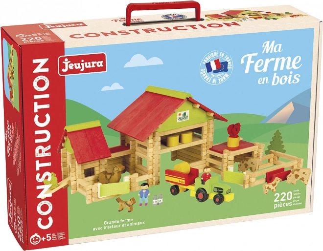 Découvrez le charme de la campagne avec le jeu de construction en bois JEUJURA, qui fait découvrir aux enfants la vie à la ferme tout en stimulant leur créativité et leur motricité fine. Le set comprend 220 pièces en bois massif, un tracteur et des animaux, et est livré dans une valisette pratique avec un guide simple. Fabriqué en France en hêtre et pin de qualité, avec des peintures à l’eau.