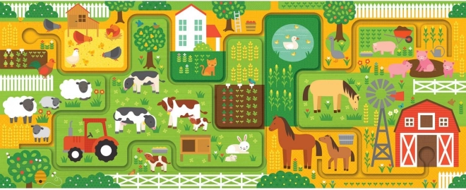 Puzzle ludique et éducatif pour les tout-petits. Assemblez 10 grandes pièces et suivez du doigt le labyrinthe à travers la ferme. En jouant, les enfants développent leur motricité fine, leur concentration et leur sens de l’observation en cherchant 20 objets différents sur l’illustration. Le puzzle est fabriqué en papier recyclé et imprimé avec des encres à base de plantes, respecte des normes de sécurité strictes et convient idéalement aux enfants dès 2 ans.