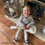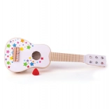 La guitare est fabriquée en bois solide et durable et répond aux normes de sécurité européennes en vigueur. Son motif étoilé attire immédiatement le regard et motive les enfants à se produire devant la famille et les amis. Jouer de la guitare développe le sens du rythme, la perception sensorielle, la dextérité et la créativité.