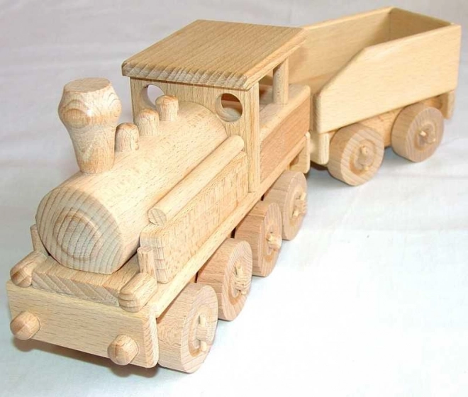 Ce modèle en bois de locomotive à vapeur séduit par la précision de sa fabrication en hêtre et par son design naturel, mis en valeur uniquement par l’encaustique et le polissage. La locomotive possède des roues mobiles et est conçue sans arêtes vives, garantissant un jeu sécurisé pour les enfants. Elle convient ainsi aussi bien pour jouer à la maison que dans le bac à sable.