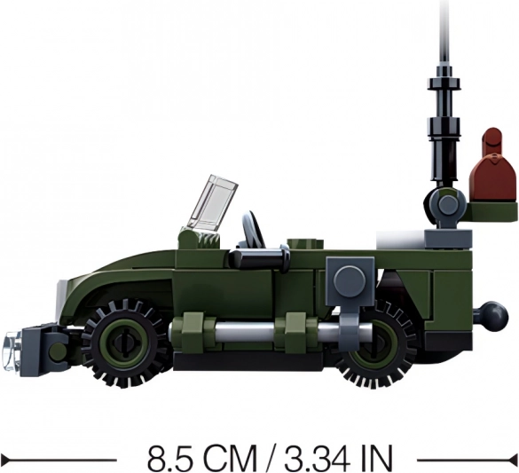 Ce set de la série thématique « WWII » offre aux petits comme aux grands constructeurs l’occasion de créer et de combiner. La jeep Sluban est fabriquée en plastique ABS résistant, ce qui garantit une longue durée de vie et un jeu en toute sécurité.