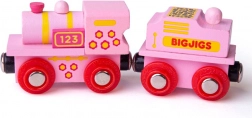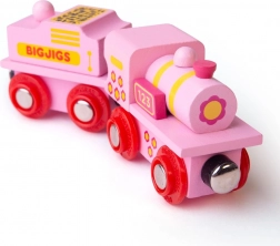 Adorable locomotive rose avec tender de BIGJIGS, idéale comme premier train pour les circuits en bois. Grâce aux attelages magnétiques, vous pouvez facilement raccorder d’autres wagons, compatibles avec la plupart des circuits de trains en bois du marché. Fabriquée en bois de qualité et conforme aux normes de sécurité européennes, elle stimule l’imagination, la motricité fine et la coordination des enfants.