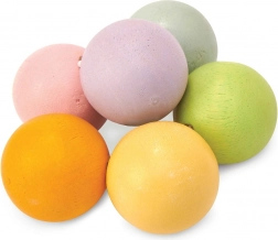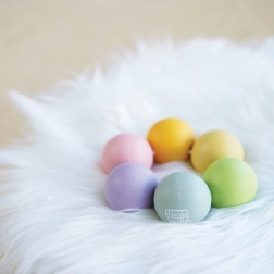Des billes en bois pastel sur un élastique se tiennent agréablement en main et aident à soulager les gencives sensibles lors des poussées dentaires.