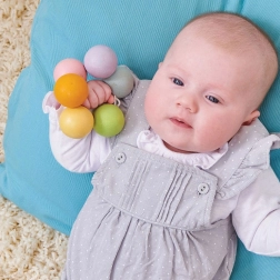 Structure légère et compacte, facile à saisir, favorisant la motricité fine et l’exploration sensorielle dès la naissance.